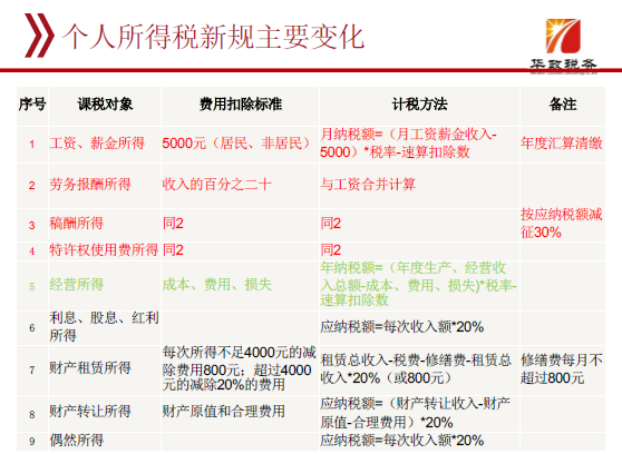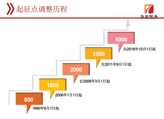 最新的一次修正,2018年8月,是時隔七年的一次重大稅費變革,工資薪金、勞務報酬、稿酬和特許權使用費等四項勞動性所得首次實行綜合征稅;個稅起征點由每月3500元提高至每月5000元(每年6萬元);首次增加子女教育支出、繼續教育支出、大病醫療支出、住房貸款利息和住房租金等專項附加扣除;優化調整稅率結構,擴大較低檔稅率級距